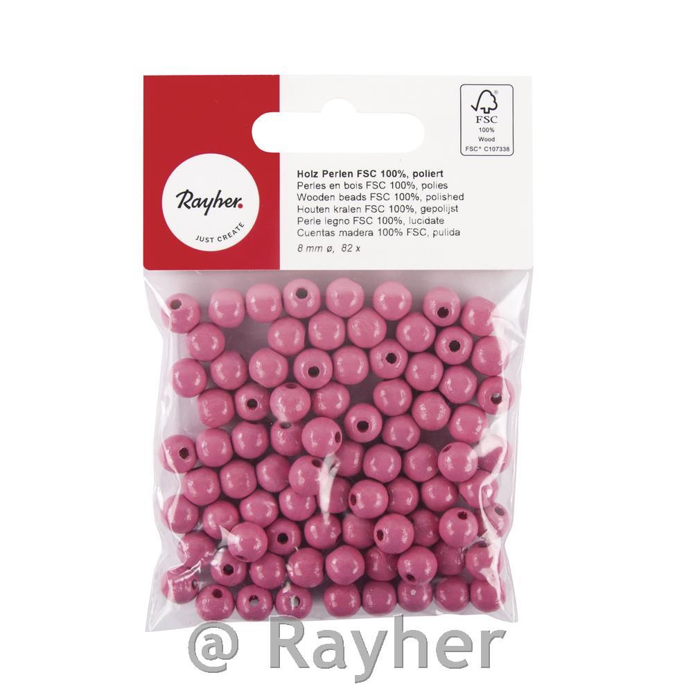1250233 - Perle lesene, pološčene, 8mm o, pink, 82 kosov