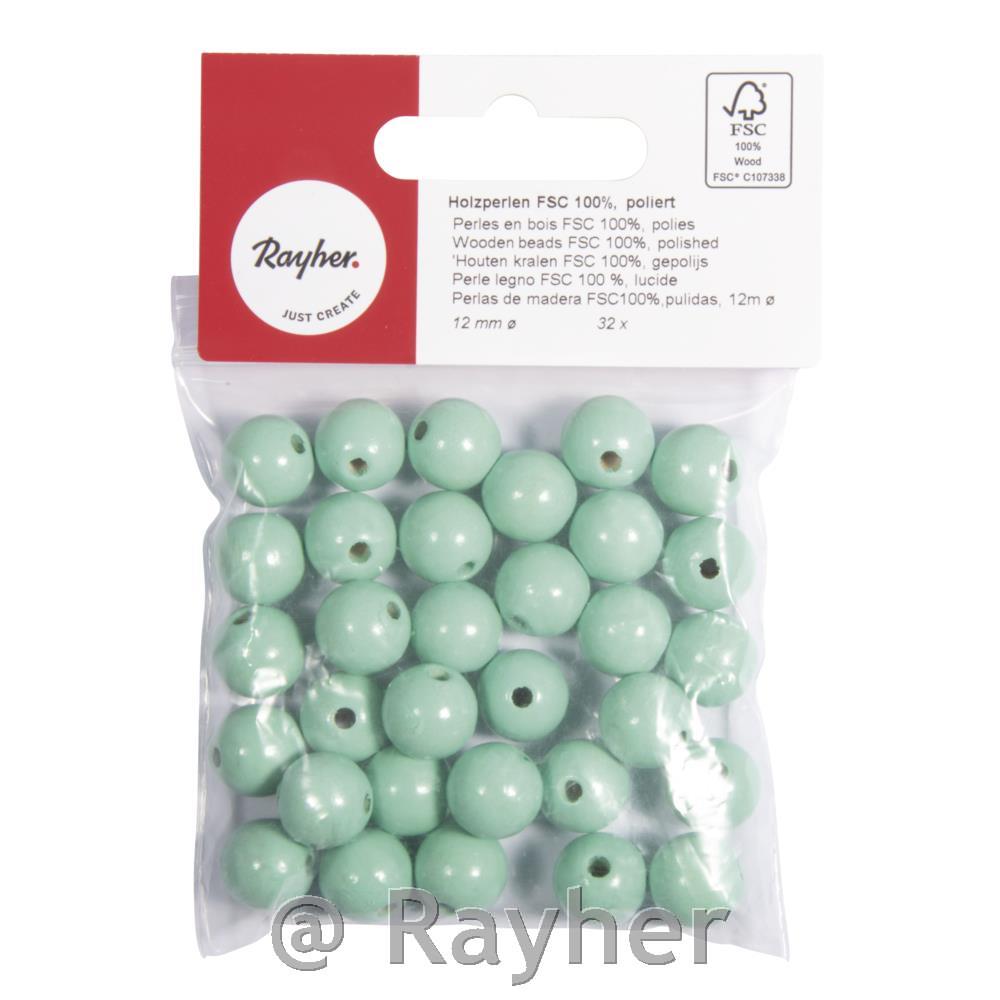 1250411 - Perle lesene, pološčene, 12mm, sv. zelene, 32 kosov
