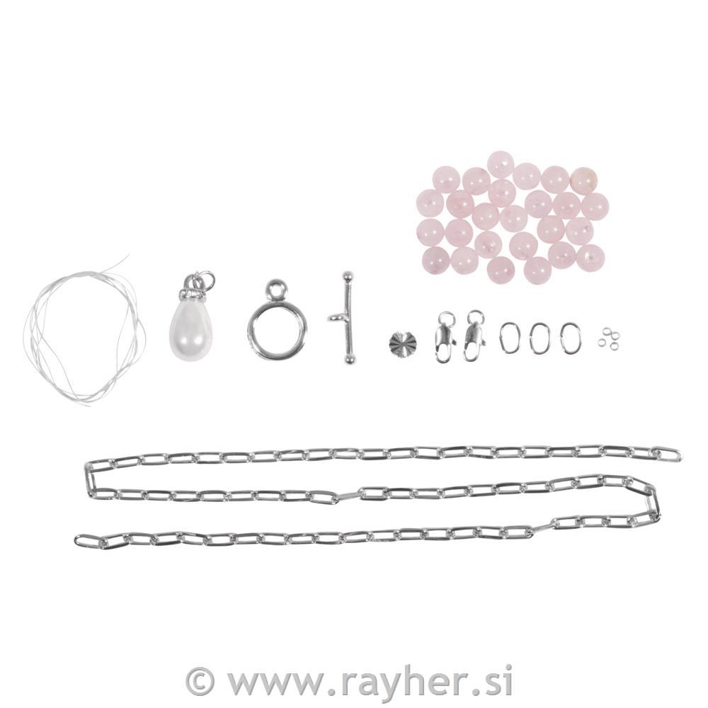 Kombinirajte trendi lančić od spajalica s odabranim poludragim kamenjem od ružičastog kvarca i odabranim dodacima za nakit kako biste dobili jedinstveni komad nakita. Ovaj DIY lančić je elegantan i originalan, jer se može nositi kao narukvica s perlicama ili kao ogrlica bez perlica. Sofisticirani koncept "Klikni, miješaj i kombiniraj" omogućuje individualne kombinacije nakita zahvaljujući neupadljivim kopčama.