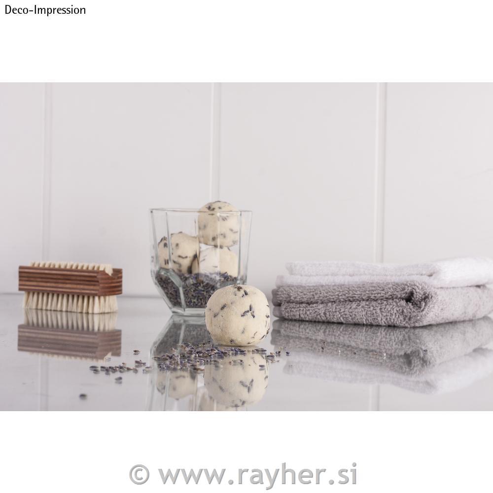 Set vsebuje: komponente za izdelavo kopalnih kroglic (A,B in C) 270g, dišeče olje sivka 10ml, posušene cvetove sivke 5 g