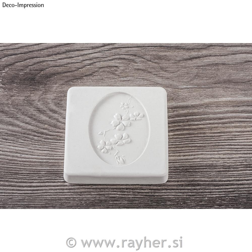 Odtis za kalup položite na dno kalupa za vlivanje mil in čezenj vlijete milo. Ko vzamete milo iz kalupa, odstranite še odtis, ki na milu pusti vtisnjen motiv.