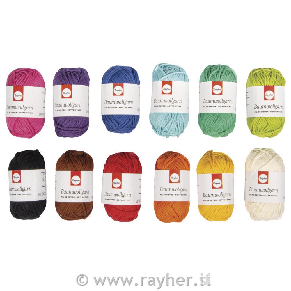 rayher.hr Pamučna pređa, 20 g x 12 komada Prodajna cijena:16,99 € Koda:44008999 Marka:Rayher Zaliha: na zalihi U košaricu kos