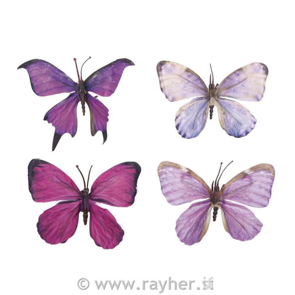 Tekstilni leptiri s 3D efektom, duljina 8,5 cm, 4 komada u nježnim nijansama boja.