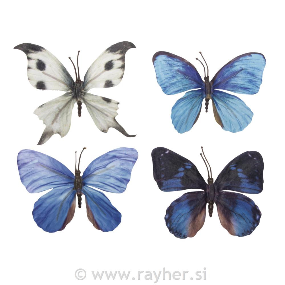Leptiri 3D, tekstilni, set 4, plavi