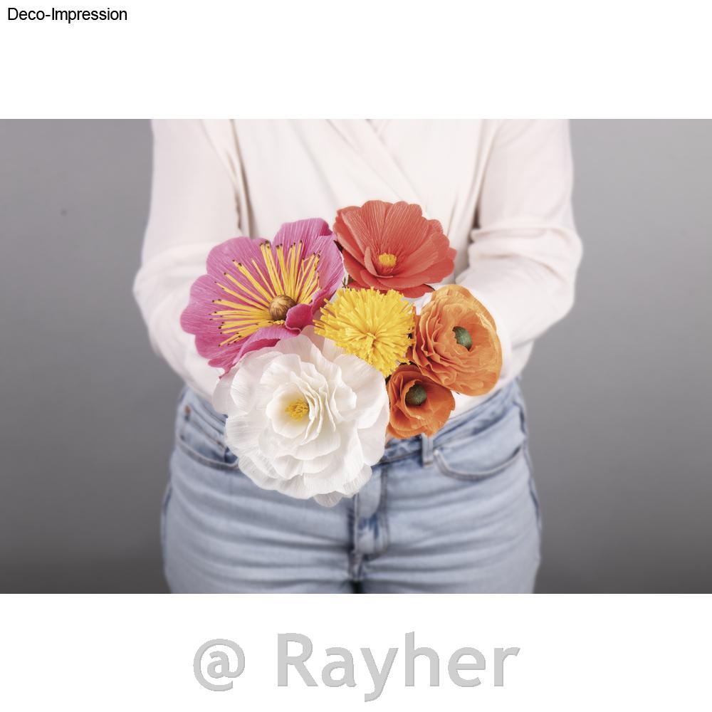 Airy paper flowers to make yourself ouf crepe paper: six different types of decorative flowers take shape thanks to this colourful crepe paper.