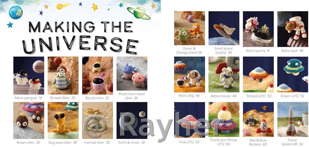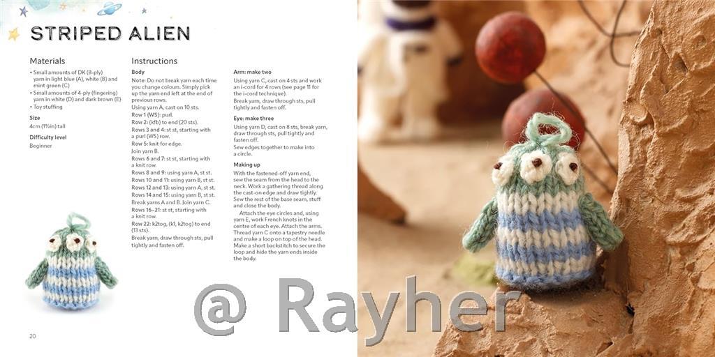Ova izvanzemaljska kolekcija najprodavanije autorice pletenja Sachiyo Ishii izvrstan je izvor razigranih uzoraka, savršenih za poklone ili igračke, te fantastičan način da iskoristite svoju zalihu pređe. Birajte iz galaksije zabavnih favorita, od slatkih, šarenih izvanzemaljaca do maženja i ljubavi, raketa i svemirskih letjelica koje će potaknuti njihovu znatiželju, do hrabre skupine životinjskih astronauta koji će putovati na rub svemira!