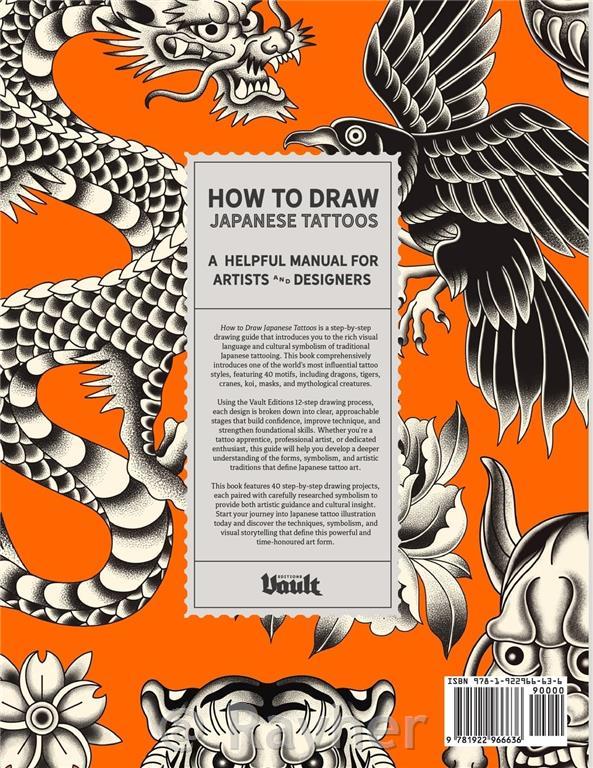 Svaki dizajn je raščlanjen korištenjem 12-koraka procesa crtanja Vault Editions, što složene kompozicije čini pristupačnima, ponovljivima i idealnima za izgradnju samopouzdanja i vještina. Bez obzira jeste li naučnik tetoviranja, profesionalni umjetnik ili entuzijast za crtanje, ovaj vodič je osmišljen kako bi produbio vaše tehničke sposobnosti i kulturno razumijevanje tradicionalne japanske umjetnosti tetoviranja.