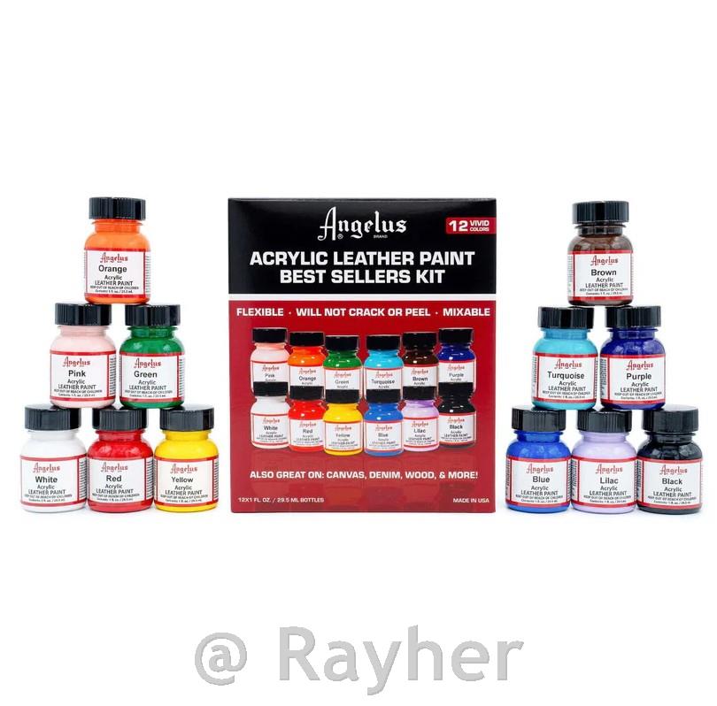 Angelus Best Seller set sadrži 12 najpopularnijih nijansi boja - crnu, bijelu, smeđu, narančastu, plavu, tirkiznu, ljubičastu, zelenu, crvenu, žutu, svijetloljubičastu i ružičastu u bočici od 29,5 ml.
