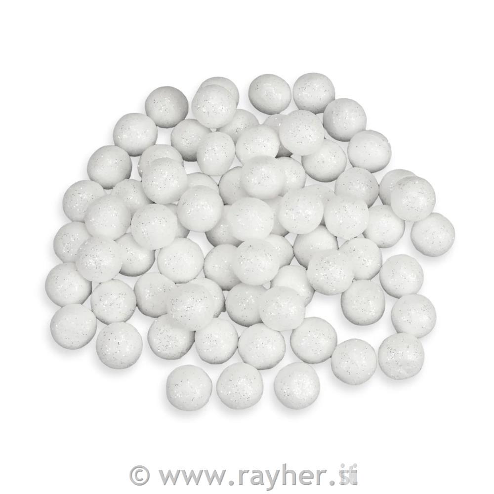 Kuglice sa šljokicama, bijele, 1,5 cm