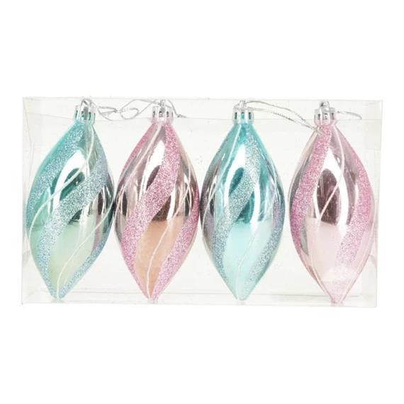 Božićni ukrasi duguljasti, sa šljokicama, set 4