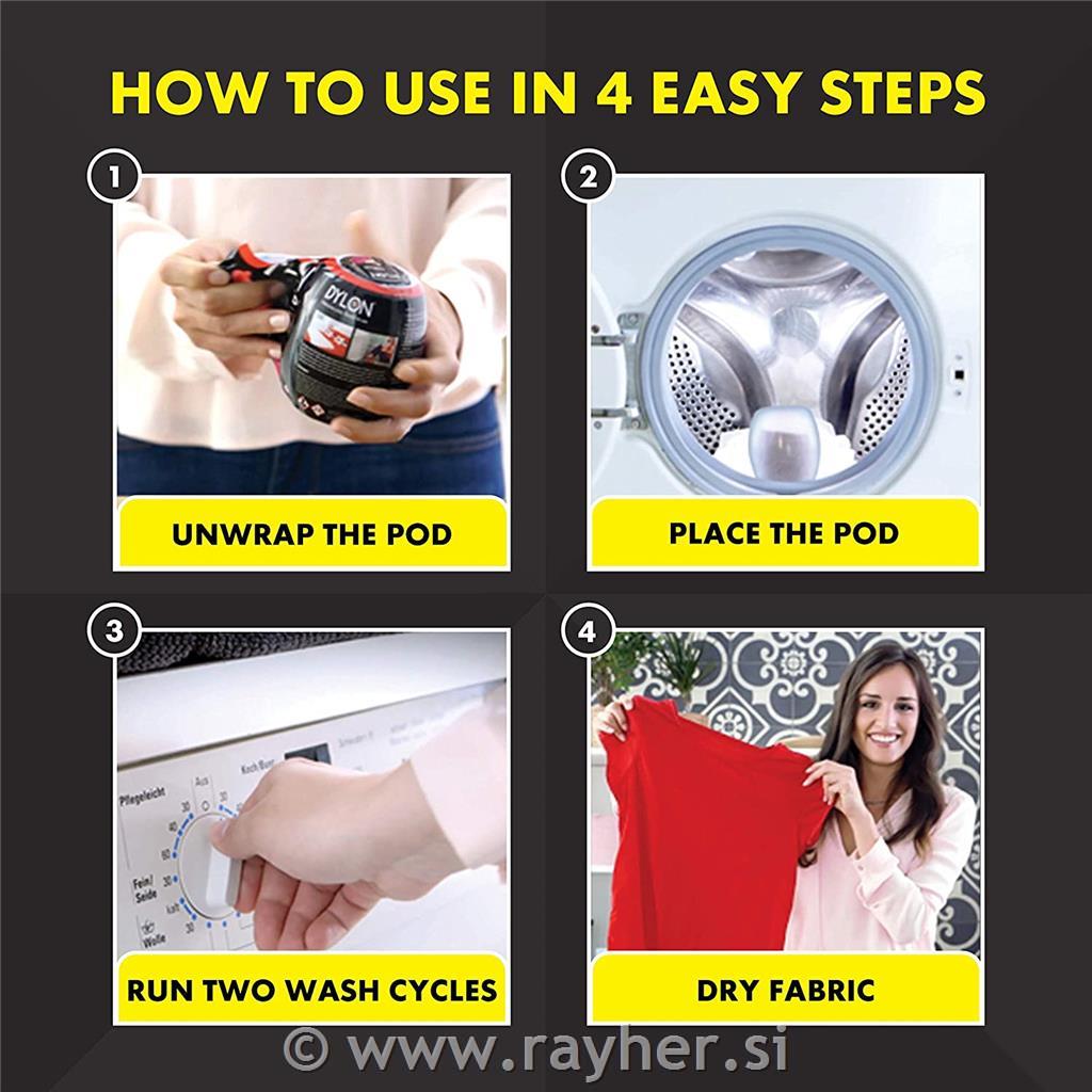 Dylon barve z strojno pranje perila so najboljše barve za domače barvanje tekstila. Barve vsebujejo vse komponente in uporabnik ne potrebuje nobenih dodatnih sestavin (na primer soli). Uporaba je zelo enostavna; vlažne tkanine preprosto vstavimo v pralni boben, odstranimo tulec in pokrovček ter na tekstil položimo odprto embalažo barve. Tekstil lahko prebarvamo ali samo osvežimo barvo, ki je s časom obledela.