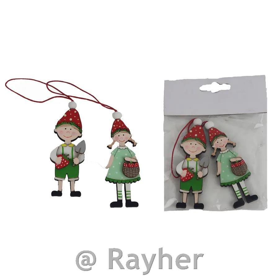 Wooden decorations, girl gnome & boy gnoe, 2pc
