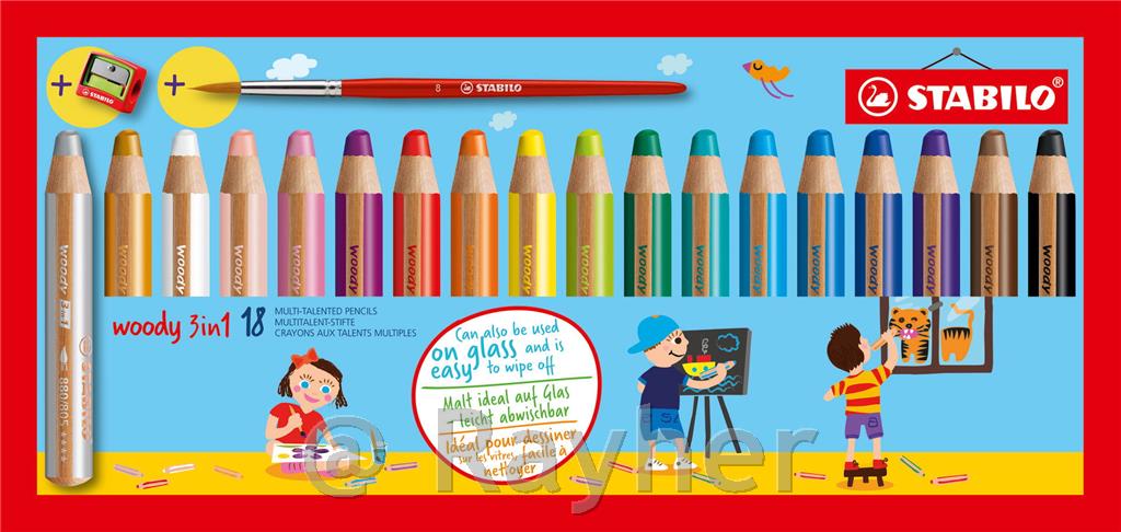 Stabilo Woody barvice set 18+ šilček + čopič