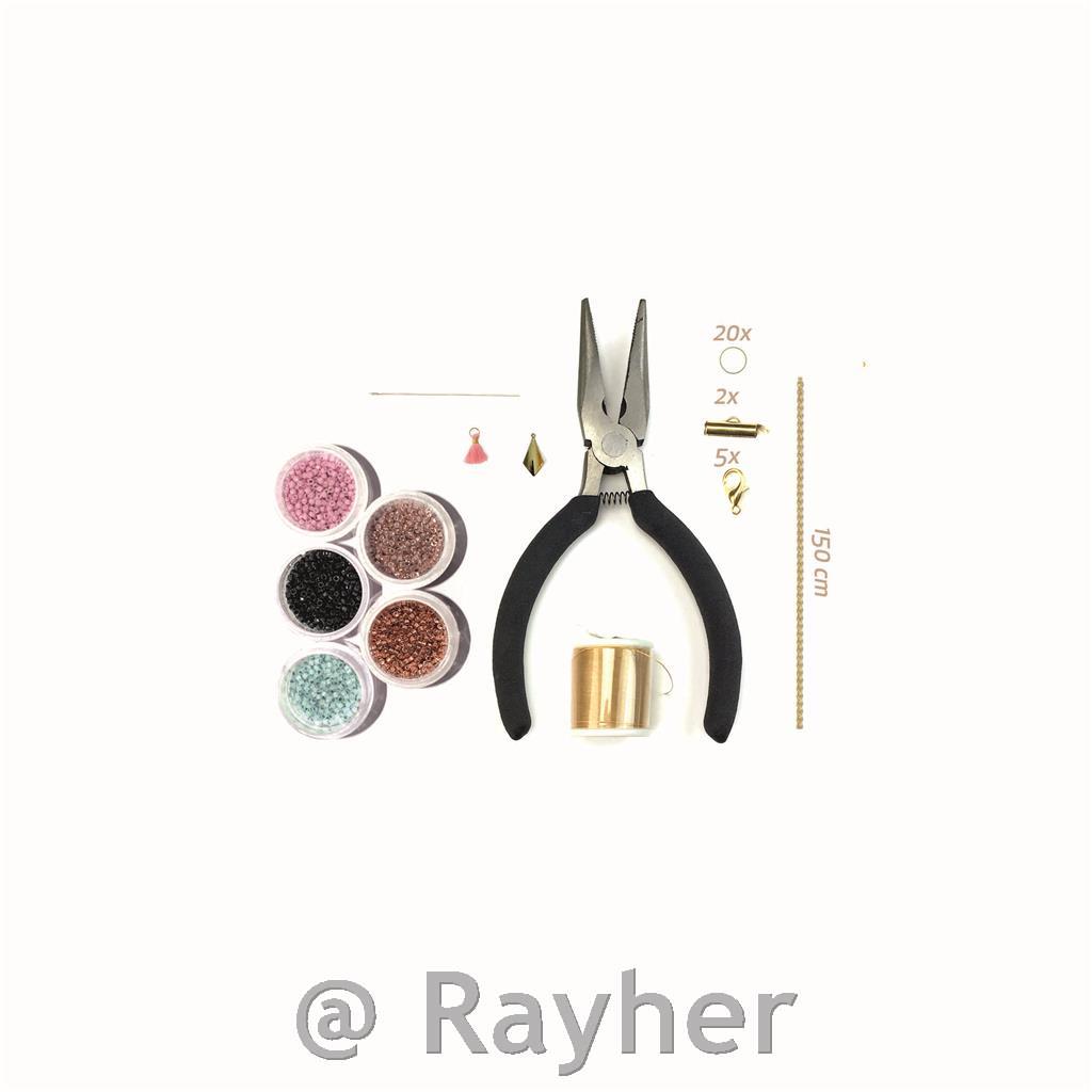 komade nakita, uzice, kliješta, iglu, lančić, knjižicu sa slikovnim uputama.