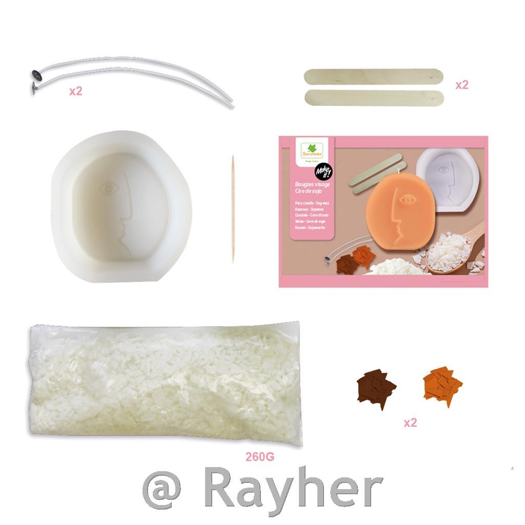 Set sadrži 260 g sojinog voska, silikonski kalup, 2 fitilja, 2 štapića, dvije boje, knjižicu s ilustriranim uputama.