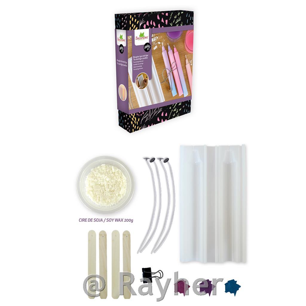 This pretty box contains everything you need to make 4 tye and dye original, trendy candles. This box contains: 1 mold, 4 dyes, 300g soy wax powder, 4 wicks, 4 wooden sticks and 1 set of instructions.