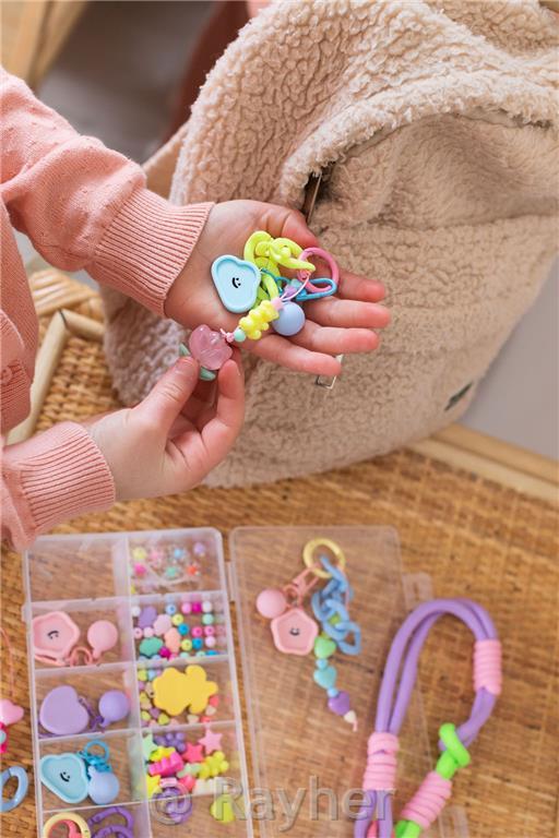 Create your own trendy jewelry and accessories with this surprise-filled Bijoux Box! Inside this pretty box, you’ll find everything you need to imagine and create unique, colorful, and 100% stylish pieces! Necklaces, bracelets… and also adorable keychains to clip onto your bag, plus fun, candy-colored cords to keep your favorite accessories close at hand.