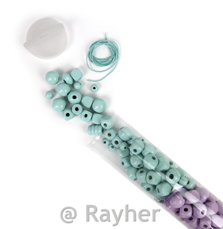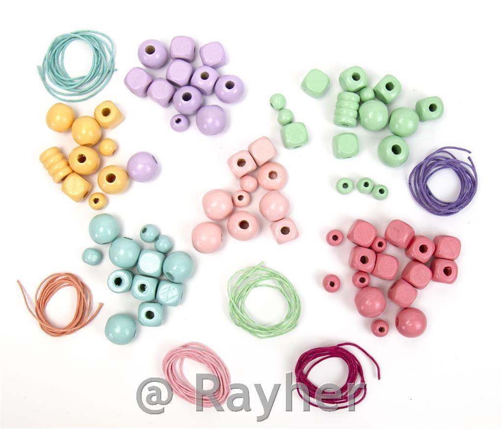 Nice pastel color wooden beads from several shapes to create wonderful jewels: necklaces, bracelets...Contents more than 300 + wooden beads / 5m of thread