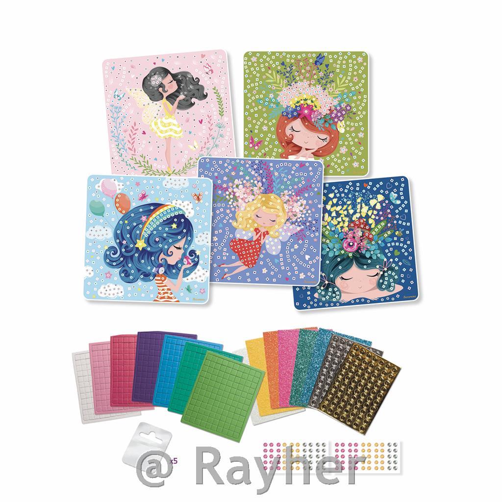U ovom setu naći ćete 5 tiskanih motiva. Sadržaj: 1500 mozaika, 5 kartonskih ploča 24x24 cm, 5 visećih pločica, 1 list s ilustriranim uputama. Preporučuje se za djecu stariju od 5 godina.