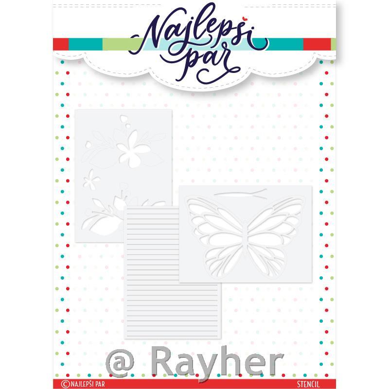 Set uključuje 3 plastične šablone dimenzija 11,2 x 15,3 cm.