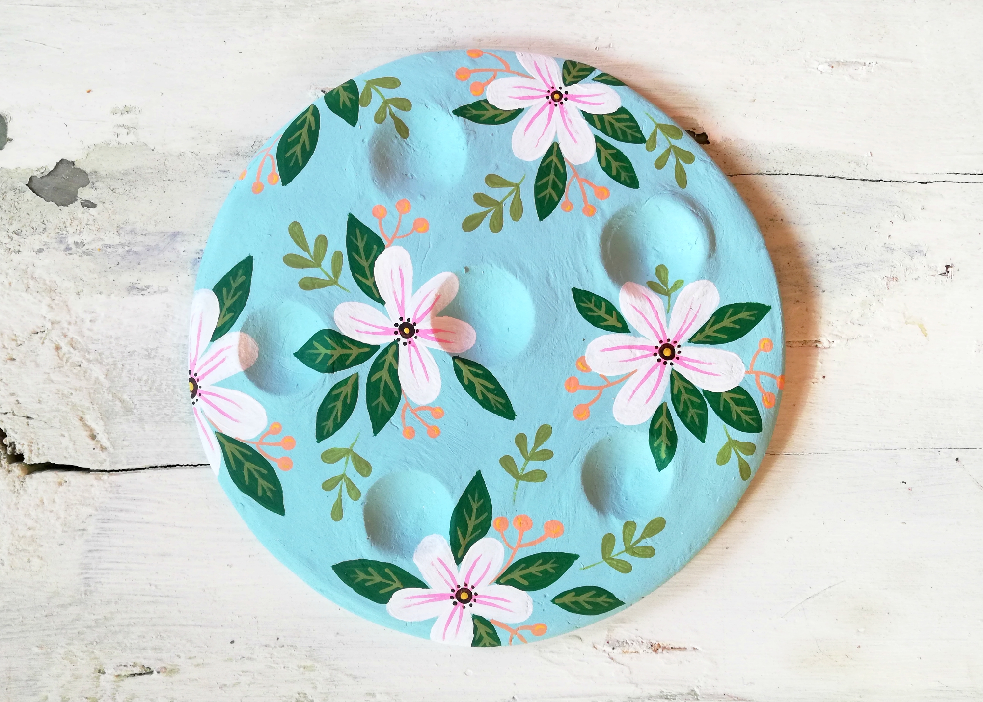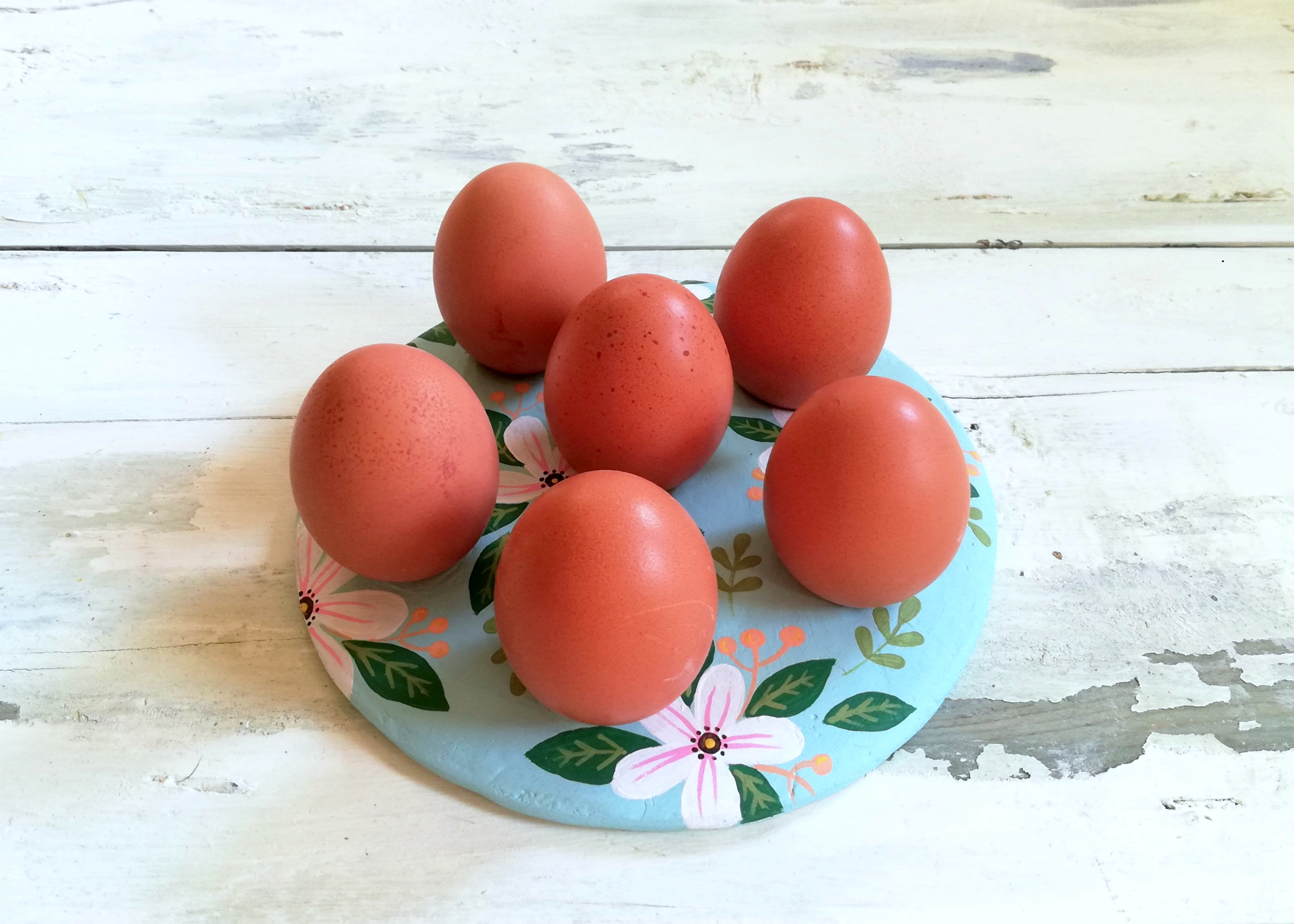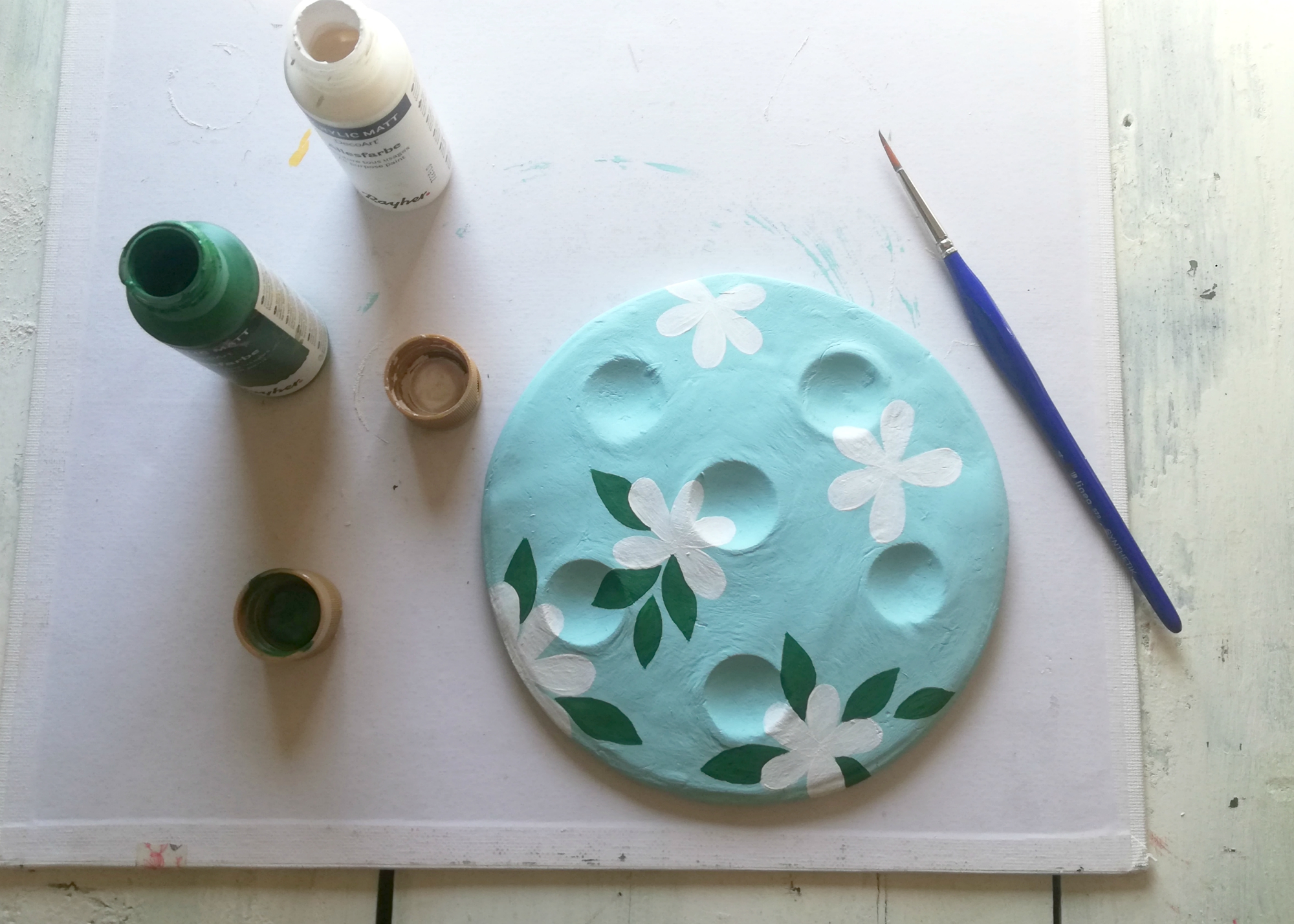 Od modelirne mase koja se suši na zraku možete izraditi cvjetni tanjur koji će služiti kao stalak za pisanice.