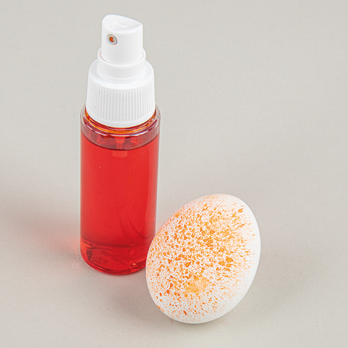 Pripremljenu boju ulijte u bočicu s raspršivačem i po želji poprskajte jaje (s udaljenosti od oko 15-20 cm). Preporučujemo da najprije isprobate prskanje na komadu papira.