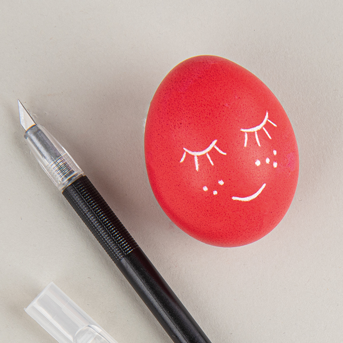 Kokošje jaje obojite prema osnovnim uputama i pustite da se dobro osuši. Na obojenom jajetu najprije olovkom nacrtajte motiv. Skalpelom (oprezno, precizno i uz lagani pritisak) stružite po obojenoj površini jajeta dok se ponovno ne pojavi bijela ljuska.