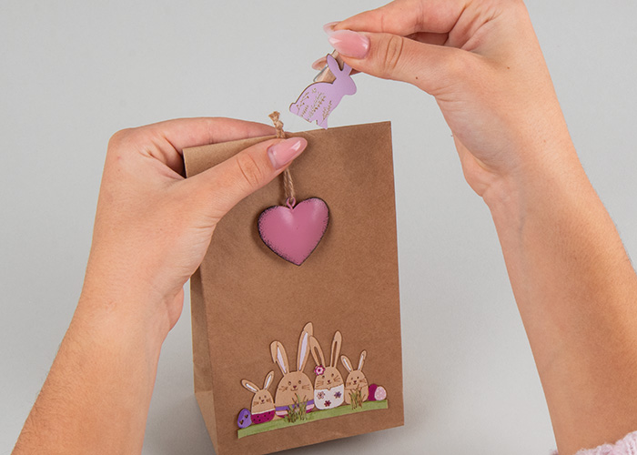 Napunite vrećicu i zatvorite je drvenom kvačicom u obliku zeca.